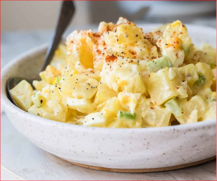 Just before serving, toss wit mayonaisse until potatoes are well coated. Stir in celery and eggs.